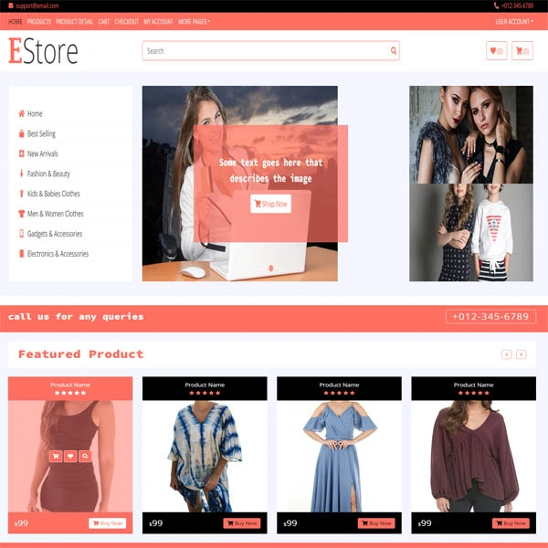 تصميم e-commerce EStore لتجارة الملابس الرجالي و الحريمي و الاطفال و الاكسسوارات و الاحذية ويصلح التصميم بيع ادوات التجميل علي الانترنت