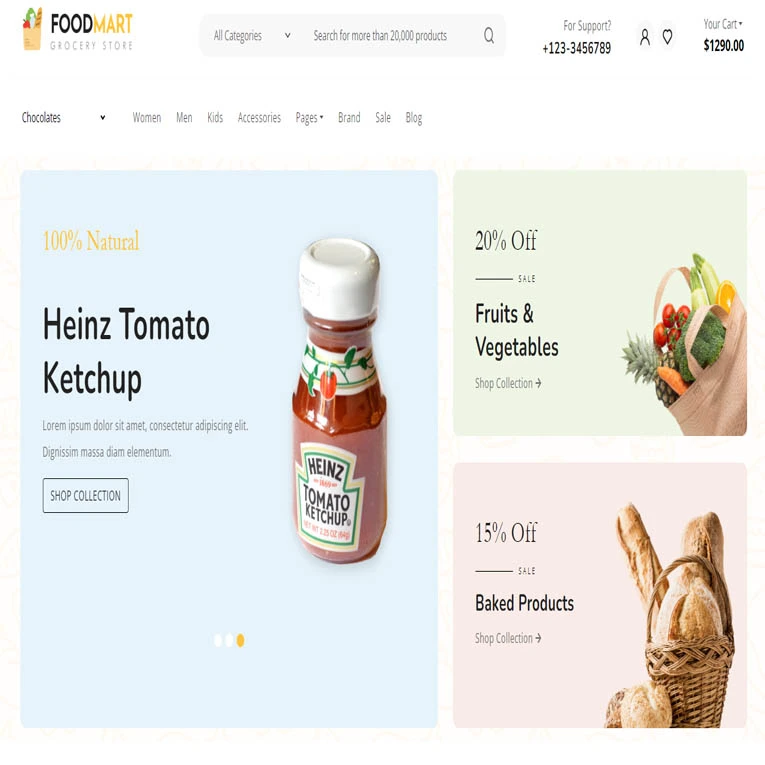 FoodMart هو قالب موقع ويب للتجارة الإلكترونية لخدمات متجر البقالة عبر الإنترنت. يستخدم تقنيات حديثة مثل Bootstrap 5 وHTML5 وCSS3 . يتميز التصميم بمظهر بسيط مع جميع الميزات الضرورية لمتجر بقالة مثالي عبر الإنترنت. يتضمن القالب جذاب فيه العديد من واجهات المستخدم المستجيبة. يوجد مرشح بحث مع شريط قائمة منسدلة يعرض جميع الفئات ، مما يضمن بحثًا سلسًا عبر الصفحات. يحتوي شريط التنقل العلوي على شريط قائمة منسدلة إضافي لتحسين التنقل عبر الصفحات. عند التمرير لأسفل، توجد لافتات وبطاقات فئات وشرائح فئات وشبكات منتجات ومحتويات مبوبة وواجهة مستخدم اشتراك البريد الإلكتروني وواجهة مستخدم نموذج اشتراك النشرة الإخبارية . يشتمل التصميم الذي يركز على الأجهزة المحمولة أيضًا على أداة تحميل مسبق وتأثيرات عند التمرير وأزرار الحث على اتخاذ إجراء والمزيد لضمان أفضل الخدمات. علاوة على ذلك، فإن هذا المظهر مستجيب ويعمل بسلاسة على الشاشات الصغيرة إلى الكبيرة دون أي متاعب.